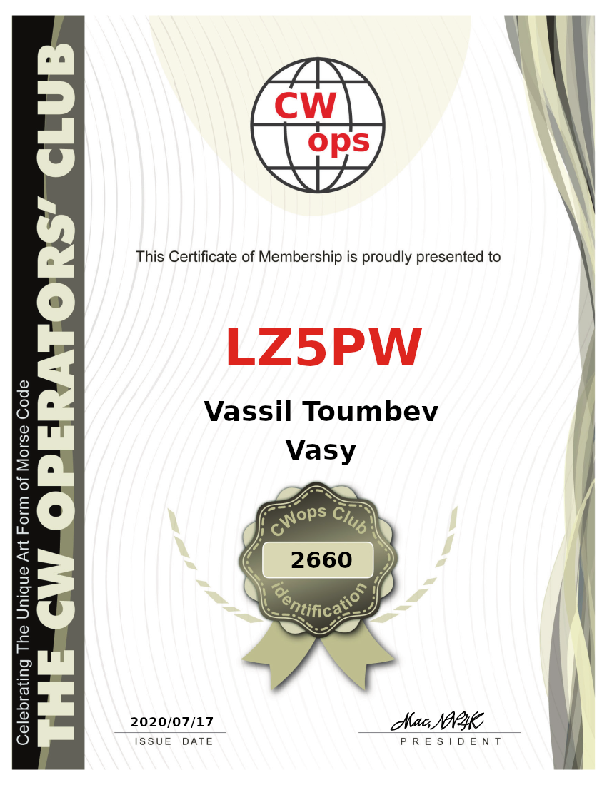 Member of Thracian Rose Club - TRC#186, RCWC - #1226, CWOps - #2260, eQSL - AG and LoTW. Profiles on qrzcq.com, qrz.com,